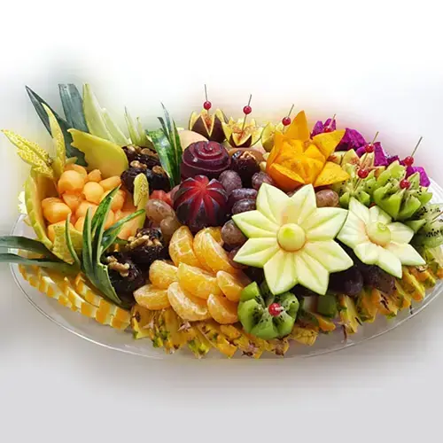 An impressive and luxurious heart-shaped tray, the tray consists of a variety of fresh, high-quality and delicious fruits. A perfect gift for a birthday, birth and any romantic occasion such as an anniversary, Women's Day, Valentine's Day and more. The tray is of course also suitable for hosting. The composition of the fruit may vary depending on the season.